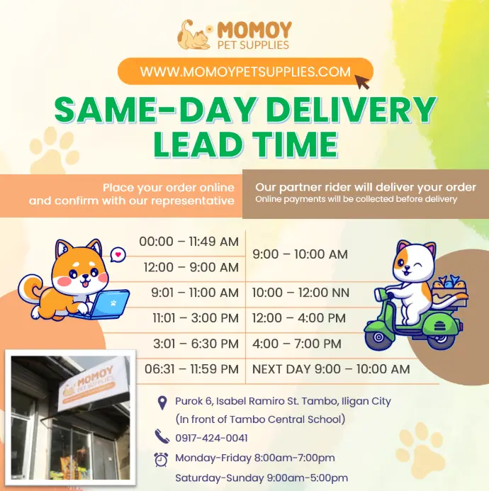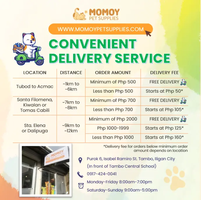 Fulfilling your furparents duties has never been this convenient! We delivery for FREE within Iligan City with minimum order amount per location.